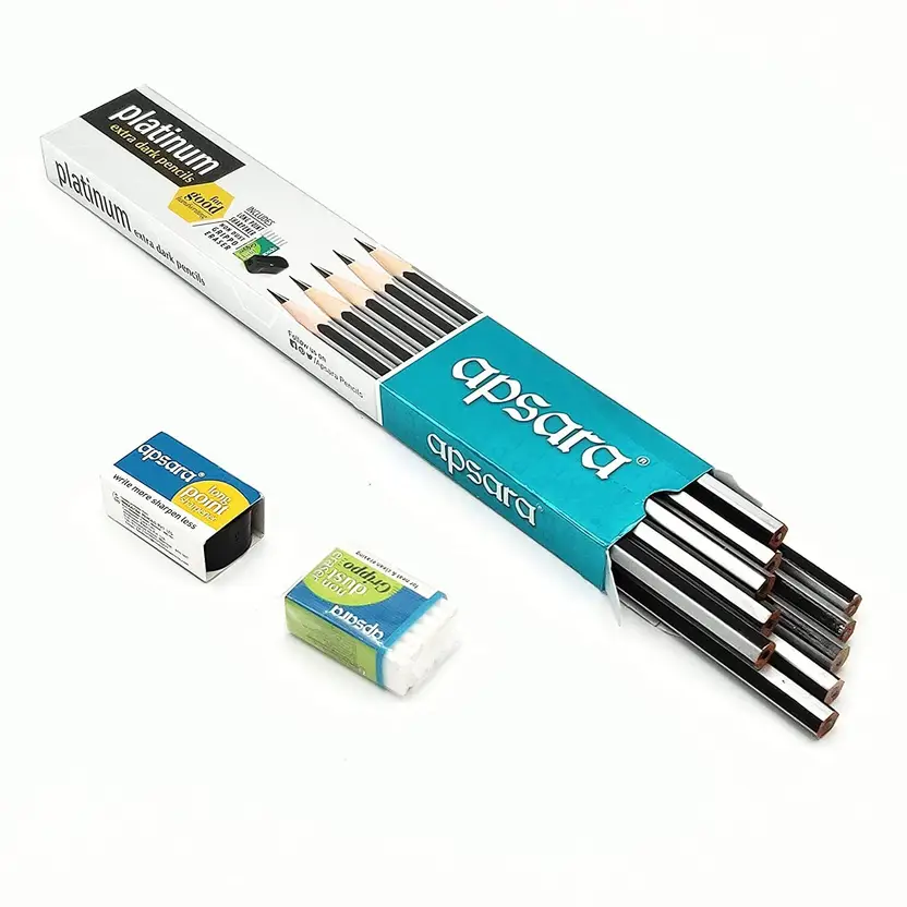 Apsara Platinum Extra Dark Pencil gives – Extra dark lead for good handwriting that stays dark long. Dark lead needs less pressure while writing. Soft wood for easy sharpening. Pencils with hexagonal cross section.