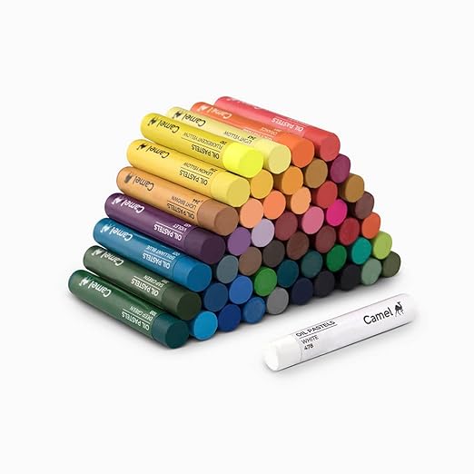 Premium set of 50 bright oil pastels by Camel, packed in a durable reusable plastic box. Smooth blending, rich shades, and perfect coverage — ideal for students, artists, and hobbyists.